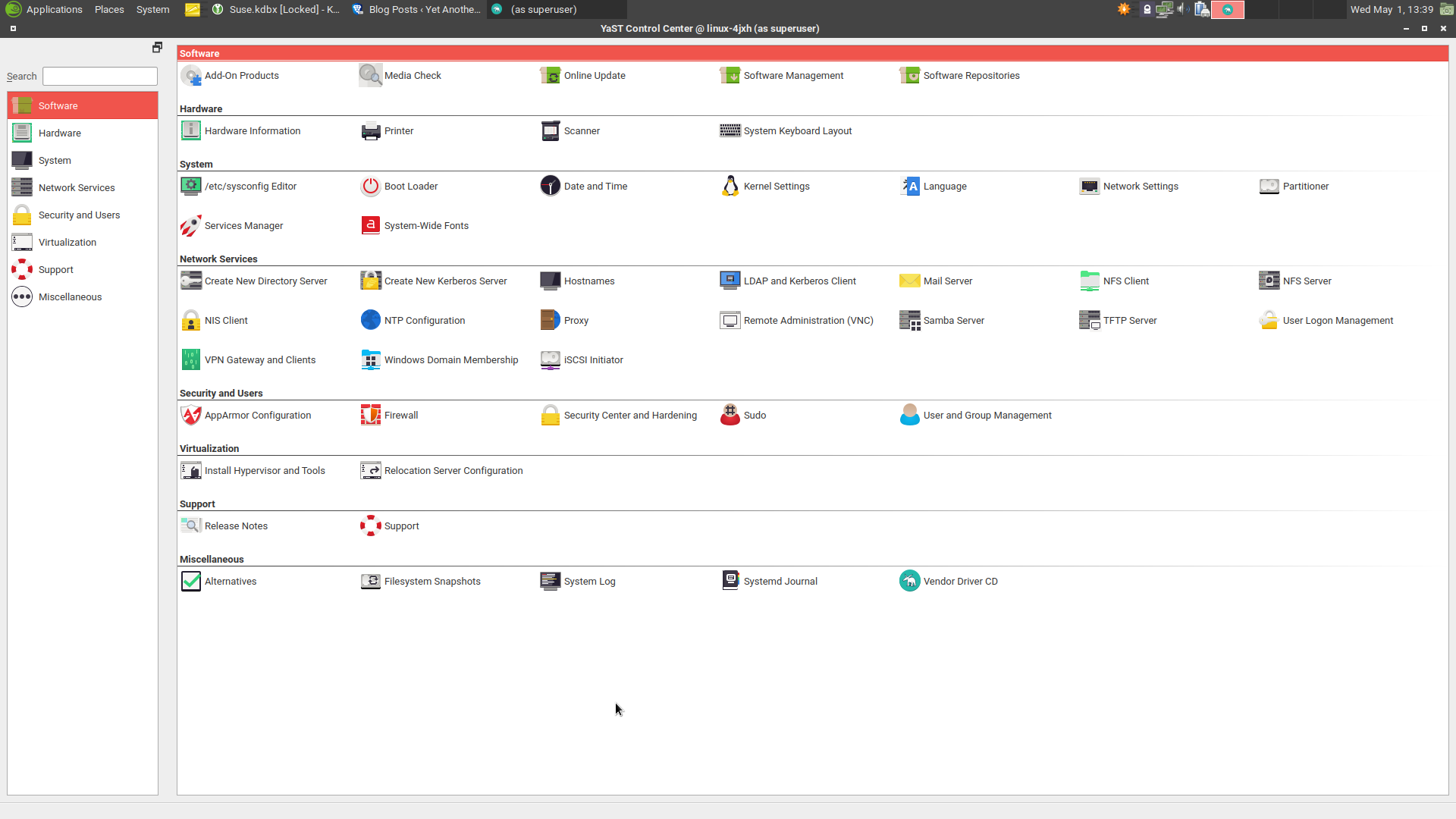 With that aside, let’s talk about the real issue with YaST and any GUI based configuration tool. It is yet another level of abstraction away from actually working with the operating system. For example, YaST has an module called HTTP Server. If you run it, it will set up Apache and any modules like PHP for you and will give you some basic options for tuning it without actually needing to work with the command line or configuration files directly. If someone told me that they had been a system administrator for 5 years but they had only ever used YaST, I wouldn’t hire them because many times things break and they can’t be fixed with YaST. Tools like YaST should mainly be a time saver not a replacement for good configuration and I think that’s what it is currently.